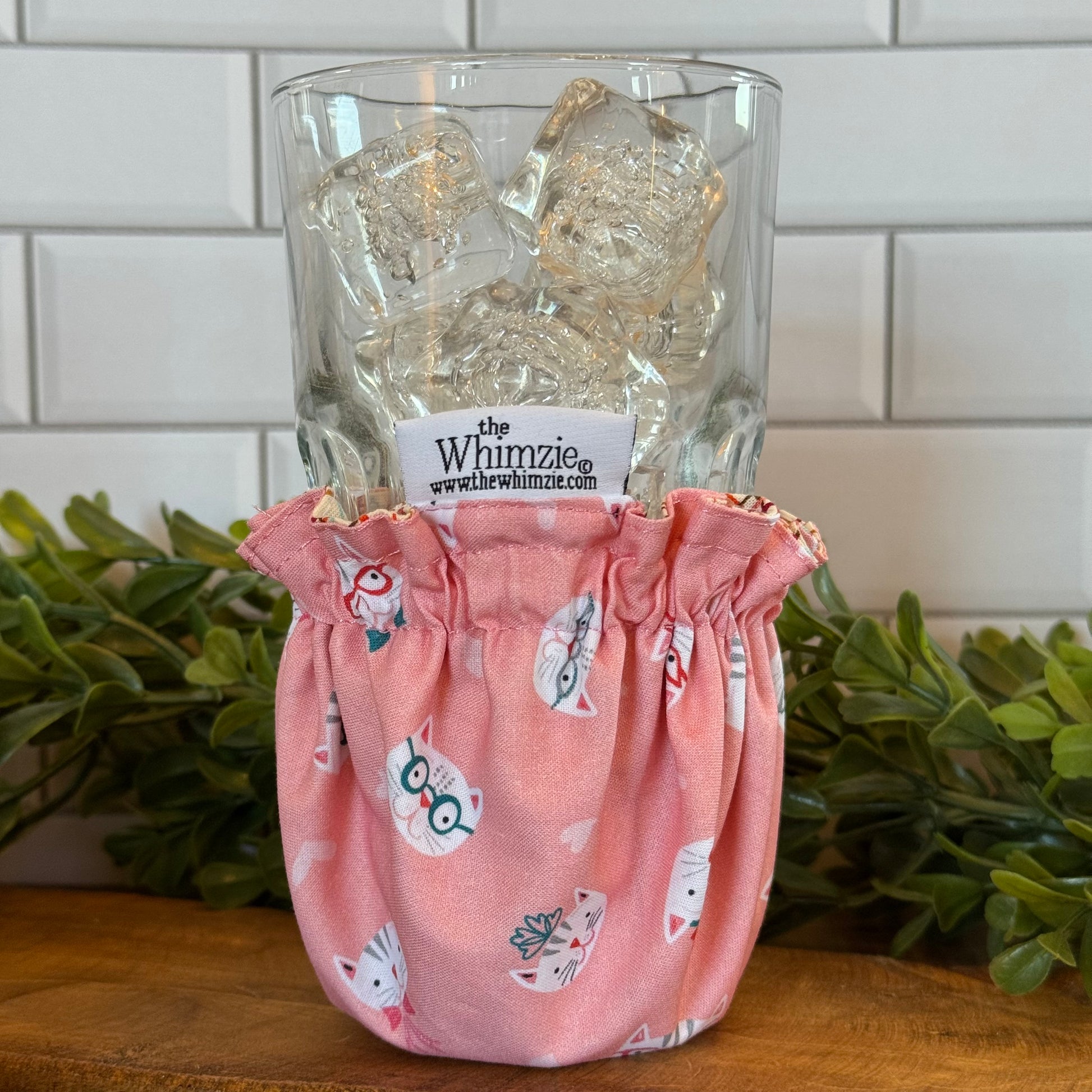 The Whimzie®, most commonly known as "a coaster on the go," slips onto your beverage of choice, saving everything from getting wet. Whimzies are: universal, distinctive, reversible, and machine washable (lay flat to dry). They are perfect for: drinking glasses, water bottles, soda cans, juice boxes of various sizes, keeping a piece of fruit clean in your handbag, holding onto little odds & ends on your nightstand, or as an ice pack for a little one