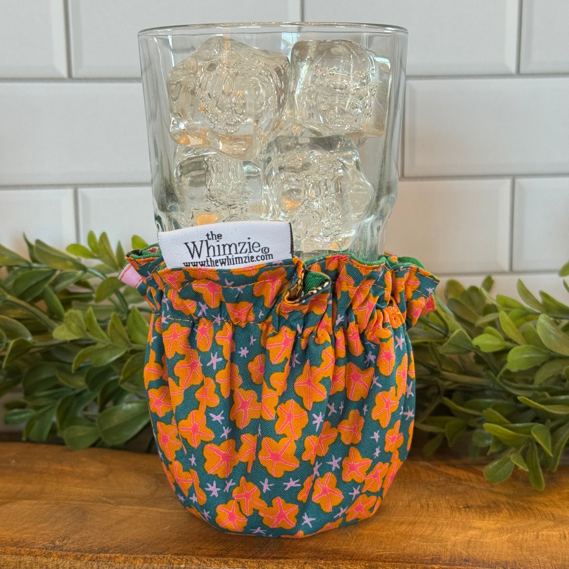 The Whimzie®, most commonly known as "a coaster on the go," slips onto your beverage of choice, saving everything from getting wet. Whimzies are: universal, distinctive, reversible, and machine washable (lay flat to dry). They are perfect for: drinking glasses, water bottles, soda cans, juice boxes of various sizes, keeping a piece of fruit clean in your handbag, holding onto little odds & ends on your nightstand, or as an ice pack for a little one